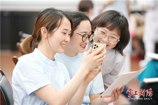 ▲拿到畫(huà)像后,護(hù)士姐姐們笑靨如花