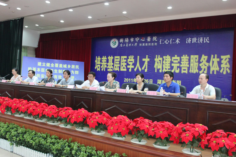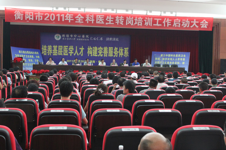 7月26日,衡陽市2011年度全科醫(yī)生轉(zhuǎn)崗培訓(xùn)啟動儀式在衡陽市中心醫(yī)院隆重舉行,這標志著我市2011年度實施“一對一”模式的全科醫(yī)生轉(zhuǎn)崗培訓(xùn)工作正式啟動。市政協(xié)副主席李慧星和市衛(wèi)生局有關(guān)領(lǐng)導(dǎo)出席會議,各縣(市、區(qū))衛(wèi)生局分管負責人、基地(衡陽市中心醫(yī)院)領(lǐng)導(dǎo)和所有職能科室及業(yè)務(wù)科室負責人、基地60名指導(dǎo)老師和2011年度參加受訓(xùn)的120名來自鄉(xiāng)鎮(zhèn)衛(wèi)生院和社區(qū)衛(wèi)生服務(wù)機構(gòu)的培訓(xùn)對象共300余人參加了啟動儀式。