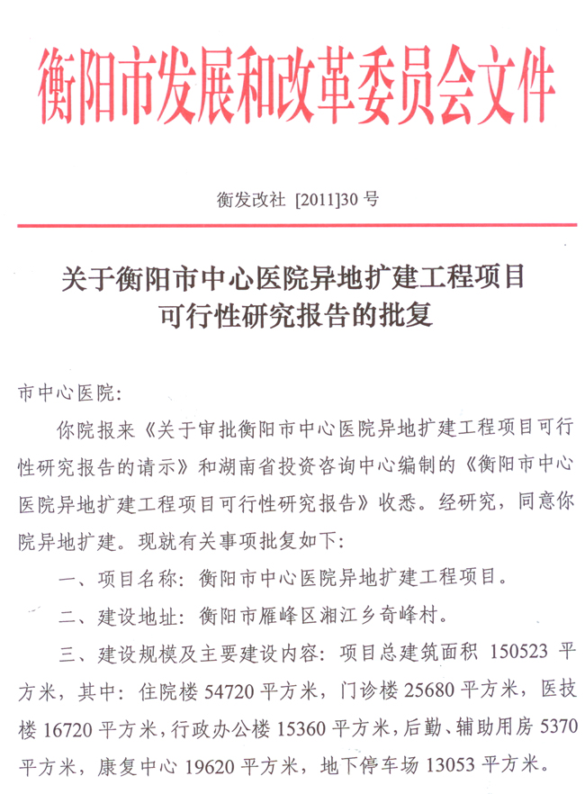 我院異地擴建工程項目可行性研究報告獲市發(fā)改委通過