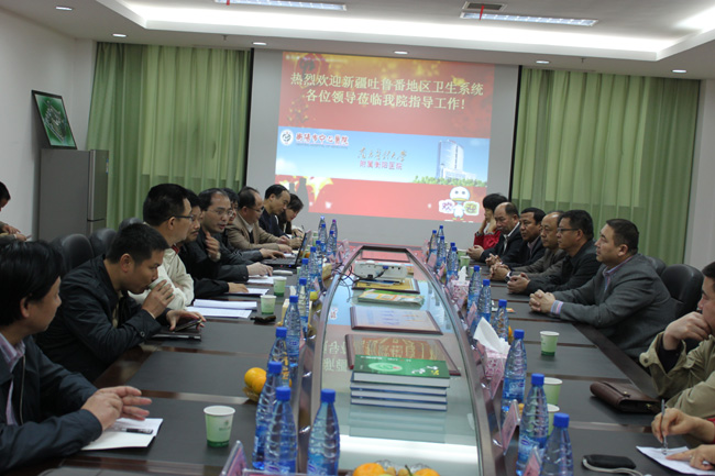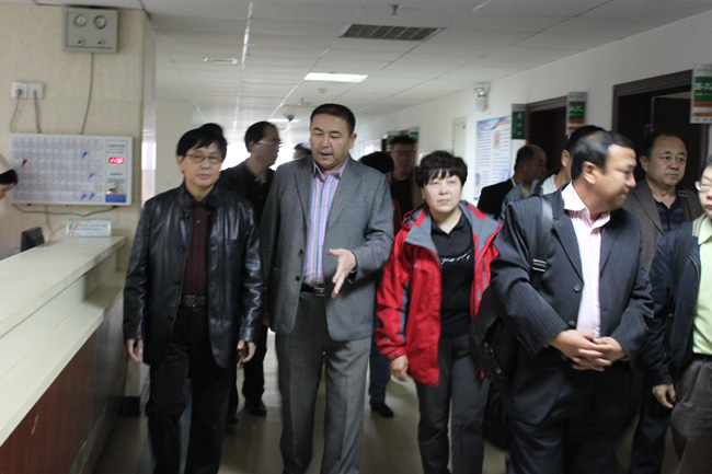 新疆吐魯番地區(qū)衛(wèi)生系統(tǒng)代表團院考察市中心醫(yī)院 發(fā)布時間:2011年10月28日 預(yù)覽:3260次 新疆吐魯番地區(qū)衛(wèi)生系統(tǒng)代表團院考察市中心醫(yī)院 10月28日,由新疆吐魯番地區(qū)衛(wèi)生局局長阿不都外力·阿不來孜率隊的對接衛(wèi)生援疆代表團來市中心醫(yī)院考察。代表團一行14人深入該院門診部、仁濟廳、心內(nèi)科等地進行了參觀,聽取了該院有關(guān)醫(yī)療援疆工作的情況介紹,雙方就今后人才培訓(xùn)、技術(shù)交流、資源共享等方面工作內(nèi)容達成了共識。省衛(wèi)生廳、市衛(wèi)生局和中心醫(yī)院有關(guān)領(lǐng)導(dǎo)陪同考察。(建軍)
