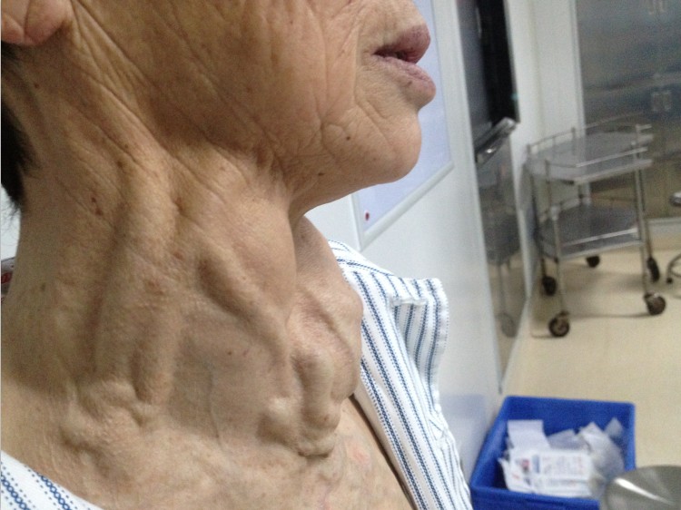 4月8日,62歲的陳阿婆因呼吸困難在家中險些窒息而被家人背送我院乳甲外科就診。陳阿婆發(fā)現(xiàn)頸部雙側腫塊已有30余年,曾就診于省內多家大型醫(yī)院,大多專家建議開胸手術,手術費高達10余萬元,有些醫(yī)院甚至考慮手術難度大、風險高就干脆拒收入院。我院乳甲外科尹軍主任將患者收住院后,會同醫(yī)務部組織了麻醉科、放射科、胸外科、呼吸內科、心內科的專家會診,進行術前討論,制定了周密的手術方案。