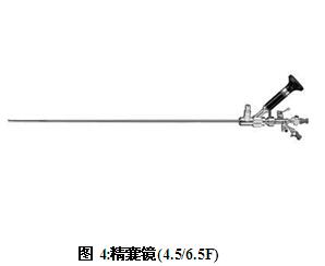 4、精囊鏡技術(shù)的優(yōu)勢(shì):在臨床上還有相當(dāng)一部分血精病例的原因不明。有的即使診斷明確,治療上往往也缺乏有效的治療手段,常常采用抗炎、穿刺抽吸等方法,效果往往并不理想,還存在一定程度的損傷,成為治療上的難題。精囊鏡可通過射精管進(jìn)入精囊,循正常的精道解剖途徑逆行依次檢查精囊和射精管,發(fā)現(xiàn)病變可同時(shí)腔鏡下處理。如發(fā)現(xiàn)腫瘤,可予以切除,如為結(jié)石,可在精囊鏡(圖4)下檢查進(jìn)行取出或者碎石,炎性改變可在鏡下對(duì)炎性黏膜給予燒灼,對(duì)積血進(jìn)行沖洗等治療,具有操作方便,觀察直接,效果肯定等特點(diǎn),成為診斷、治療血精和少弱精癥的新武器。