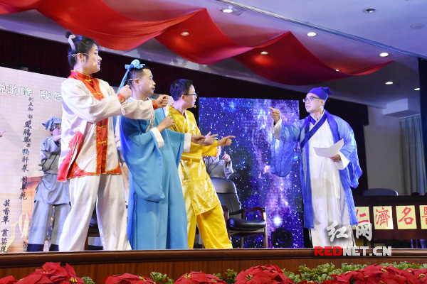 衡陽(yáng)人氣本土笑星“夏利坨”(右一)出演小品《傳承》,引爆全場(chǎng)激情。