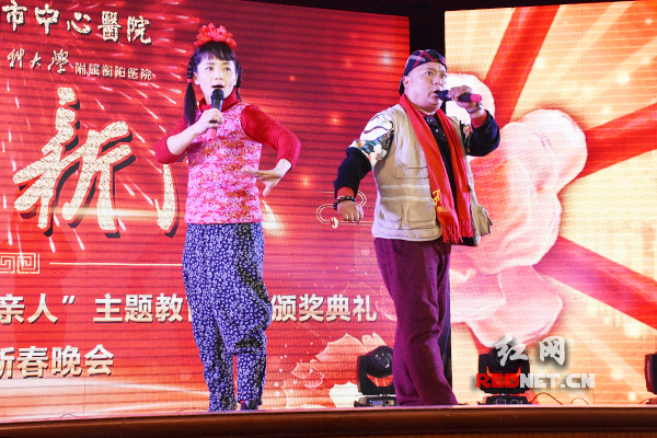 現(xiàn)場(chǎng),一個(gè)個(gè)精彩紛呈的節(jié)目展現(xiàn)了醫(yī)務(wù)人員良好的精神風(fēng)貌。舞蹈《共圓中國(guó)夢(mèng)》表達(dá)了對(duì)祖國(guó)的祝福,院領(lǐng)導(dǎo)集體表演的歌曲聯(lián)唱《走進(jìn)新時(shí)代》向現(xiàn)場(chǎng)醫(yī)護(hù)人員送出誠(chéng)摯的祝福,歌舞串燒《相親相愛》、情景歌舞詩(shī)朗誦《永恒的誓言》催人淚下,感染了現(xiàn)場(chǎng)所有的觀眾,小品《歡樂(lè)健身房》爆笑不斷。晚會(huì)還邀請(qǐng)了衡陽(yáng)人氣本土笑星“夏利坨”出演小品《傳承》,引爆全場(chǎng)激情,幽默逗趣的表演贏得觀眾的連連掌聲……