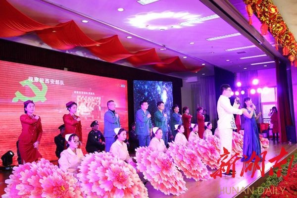 當(dāng)天下午2點(diǎn)30分,晚會(huì)在歡快喜慶的舞蹈《共圓中國夢》中拉開帷幕。舞蹈、音樂劇、詩朗誦、歌曲串燒、小品、音樂情景劇、表演唱等節(jié)目輪番上陣,精彩紛呈。歌舞《不忘初心》抒發(fā)了醫(yī)務(wù)工作者牢記使命、砥礪前行的豪情;歌舞《擼起袖子加油干》展示了衡陽市中心醫(yī)院邁進(jìn)新時(shí)代、譜寫新篇章的信心和決心。最后,晚會(huì)在大合唱《歌唱祖國》中落下帷幕。