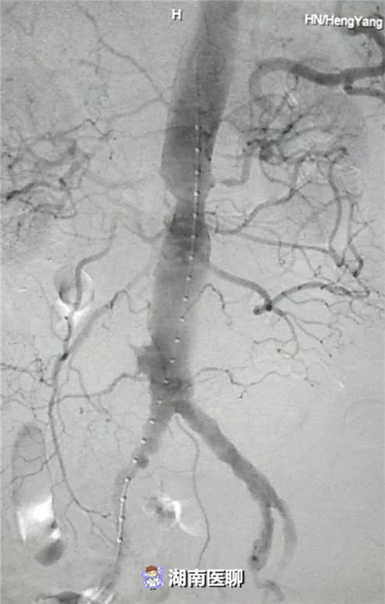 86歲老人動脈瘤危險大,怎么治? 發(fā)布時間:2018年4月24日 預覽:2518次 來源:《天天快報》 湖南醫(yī)聊 2018-04-23 體內(nèi)藏“定時炸彈”!86歲老人動脈瘤危險大,怎么治? 近日,在李珍發(fā)博士的帶領下,衡陽市中心醫(yī)院血管介入科專家涂宏手術小組成功行腹主動脈覆膜支架隔絕術血管介入治療。 為一位86歲高齡的李爺爺排除了體內(nèi)定時炸彈。 (手術中) 患者因腹部搏動性腫塊形成已有4年,伴右下腹疼痛6小時入院,既往有高血壓病史,患者入院后血壓177/96mmHg。 醫(yī)護人員隨即予以控制血壓、止痛處理,CTA檢查提示患者有腎下腹主動脈瘤,合并心 、肝 、肺 、腎等重要臟器疾患。 (CTA檢查提示患者有腎下腹主動脈瘤) 根據(jù)Laplace定律,動脈瘤直徑越大壓力越大,老人動脈脆弱,動脈瘤隨時有破裂的可能性,其危險性大。 血管介入科排除各種困難,在麻醉科協(xié)作下行腹主動脈瘤覆膜支架隔絕術(“褲衩”支架植入)。 (血管介入科行腹主動脈瘤覆膜支架隔絕術) 手術持續(xù)了1個半小時,患者術后安返病房,麻醉醒后露出了微笑,向醫(yī)務人員伸出大拇指。 (患者向醫(yī)務人員伸出大拇指) 血管介入治療 介入治療在21世紀將是一個重要的治療手段。 血管介入治療是在高科技影像設備(包括DSA、CT、超聲等)的引導下,通過穿刺、導管等技術,對身體各臟器疾病進行的新學科。 其獨到之處是不開刀,用微創(chuàng)方式治療一些以往需開刀或無法治療的疾病。 其優(yōu)點是創(chuàng)傷小、術后恢復快、并發(fā)癥少,療效確切。 已廣泛滲透于臨床各個領域,已成為一種集影像診斷與介入治療于一體新興的獨立臨床學科。 湖南醫(yī)聊特約作者:衡陽市中心醫(yī)院張永明 相關鏈接:1.https://moment.rednet.cn/rednetcms/news/20180423/1247645.html?from=singlemessage2.http://wap.e0734.com/show.php?newsid=804019&catid=85&from=singlemessage3.http://sdjs.chinareports.org.cn/ylws/2018/0424/4740.html?from=singlemessage4.http://epaper.hyqss.cn/hywb/html/2018-05/03/content_16_1.htm