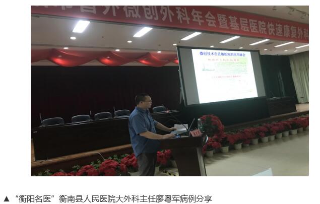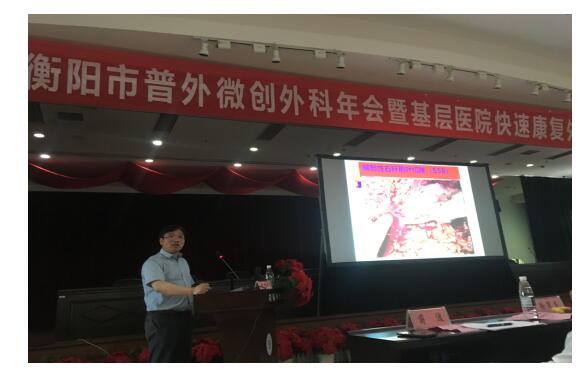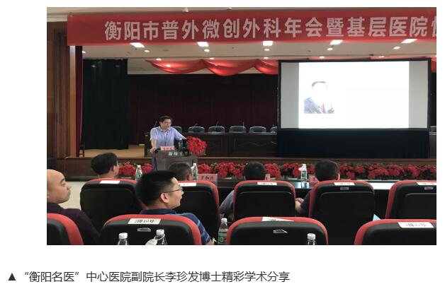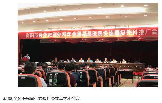 為促進普外微創(chuàng)技術(shù)發(fā)展及快速康復(fù)外科理念推廣,加強學(xué)習(xí)和交流,6月9日-6月10日由衡陽市醫(yī)學(xué)會主辦、衡陽市中心醫(yī)院承辦的“衡陽市普外微創(chuàng)外科年會暨基層醫(yī)院快速康復(fù)外科推廣會”在衡陽市中心醫(yī)院綜合樓21樓大會議室舉行。衡陽市衛(wèi)生計生委副主任、市醫(yī)學(xué)會會長胡曉明出席會議,市中心醫(yī)院黨委書記肖友儒發(fā)表了熱情洋溢的歡迎致辭,我院副院長、普外中心主任、衡陽市普外腹腔鏡微創(chuàng)外科學(xué)組主任委員李珍發(fā)博士擔(dān)任大會主席并致開幕詞,來自省內(nèi)知名的普外科大咖、麻醉科權(quán)威及護理專家、基層醫(yī)院同道300余人齊聚一堂,共襄盛舉。