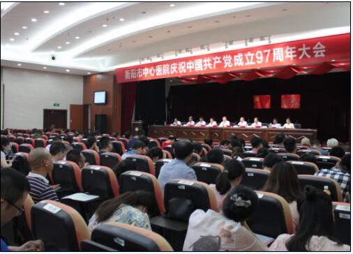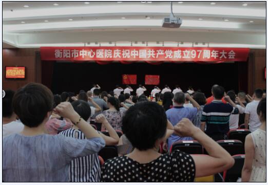 本網(wǎng)訊 通訊員唐冠群報(bào)道 為慶祝中國(guó)共產(chǎn)黨成立97周年,進(jìn)一步加強(qiáng)醫(yī)院黨支部及黨員隊(duì)伍建設(shè),激勵(lì)廣大黨員干部堅(jiān)定理想信念,激發(fā)全院黨員“不忘初心、牢記使命”的責(zé)任擔(dān)當(dāng),形成最強(qiáng)執(zhí)行、凝心聚力、積極向上的濃厚氛圍,6月29日,衡陽(yáng)市中心醫(yī)院慶祝中國(guó)共產(chǎn)黨建黨97周年大會(huì)在莊嚴(yán)的國(guó)歌聲中隆重開(kāi)幕。全體院黨委委員、全體在職黨員、退休支部支委近300人參加了會(huì)議,院黨委書記肖友儒發(fā)表講話并講黨課,院長(zhǎng)、黨委副書記申惠龍主持會(huì)議。