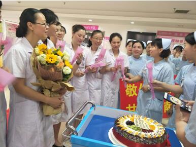 陽護士長帶領(lǐng)我們護士姐妹們,一起說,“大愛精誠解危難,妙手回春活觀音,祝全體醫(yī)師節(jié)日快樂”,表達我們對醫(yī)生最真摯的祝福,接著護士代表們向全體醫(yī)師獻花,大家一起拍照留戀,四個護士長一起推著蛋糕車從孕婦學校出來,一個刻著所有醫(yī)師名字的蛋糕呈現(xiàn)在大家的眼前。