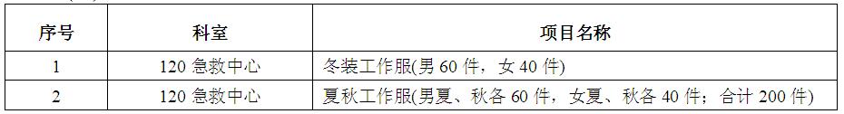因醫(yī)院發(fā)展的需要,我院擬于近期對(duì)120急救中心工作服進(jìn)行院內(nèi)招標(biāo)采購,歡迎具備條件的公司報(bào)名參加。