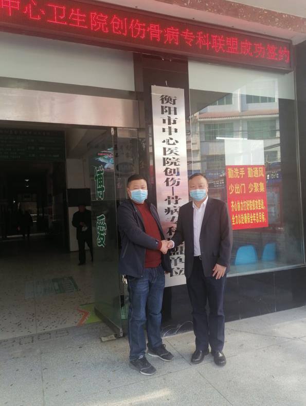 創(chuàng)傷-骨病??圃\療中心??坡?lián)盟成立后,雙方將建立“一對一”聯(lián)盟幫扶機制、“雙向就診”機制和信息共享平臺,衡陽市中心醫(yī)院將派駐一位骨科副主任醫(yī)師常駐衡陽縣金蘭鎮(zhèn)中心衛(wèi)生院,通過專家坐診,查房、會診、教學、講座、手術示教等形式,培養(yǎng)醫(yī)生骨干,提高該院骨科整體業(yè)務水平,為“雙向轉診”的病人提供無縫式交接服務,逐步打造??坡?lián)盟內(nèi)部質(zhì)量管理和患者安全保障體系,落實國家分級診療和雙向轉診等政策。