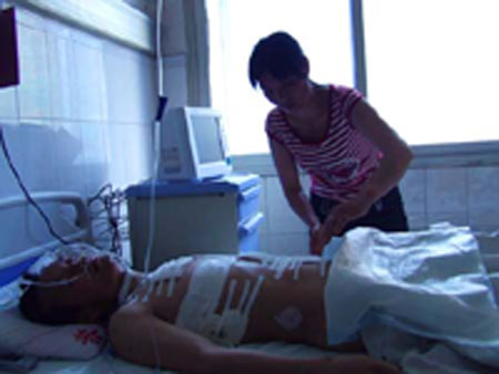 5月31日上午,在醫(yī)院的病房中,記者見到了劉廣益及他的妻子魏銀香、女兒劉惠(化名)。在經(jīng)歷了29日晚上的生死劫后,剛脫離生命危險的劉廣益身上纏滿繃帶無力地躺在病床上,妻子魏銀香在一旁滿臉的關(guān)切與擔(dān)心。劉廣益今年43歲,衡陽縣金溪鎮(zhèn)白沙村沙坪組人。他的母親已經(jīng)80高齡,因高血壓中風(fēng)半癱常年臥床,生活不能自理。劉廣益夫婦生有一男一女,女兒劉惠因患小兒麻痹癥,智商與發(fā)育均不正常,一直由魏銀香一邊打工一邊照看;兒子今年14歲,在家一邊照顧奶奶,一邊就近讀初中。前兩年,魏銀香來到興衡花苑做清潔工作,劉廣益則不得不選擇農(nóng)忙回家務(wù)農(nóng)、農(nóng)閑出外打零工,以此維持一家人的生計。如今,劉廣益遭此厄運,怎能不讓妻子愁腸百結(jié)呢?